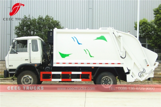 Garbage compactor truck Dongfeng (also called Garbage compressed truck, hydraulic pressing garbage truck, rear loading garbage truck, compactor garbage truck, trash compressor truck, back loading garbage compression truck, waste collection vehicle) is designed for daily rubbish transport in such living areas as all kinds of cities, large station, port and wharf, airpot, and densely-populated areas like industrial and mineral enterprises and military units.