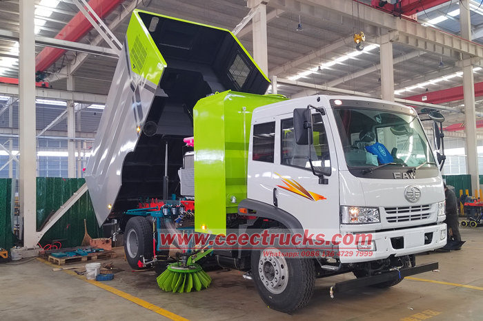 10 cbm road sweeping truck upper body kits (also called street sweeper truck superstructure, sweeping vehicle upper body kits, street cleaning vehice upper body, road cleaning truck upper body, street sweeping vehicle superstructure, broom sweeper truck upper body kits) is kind of vacuumed type truck mounted road sweeping machine , it is specially used in roadcleaning and collecting rubbish and transporting them to garbage collection spot.