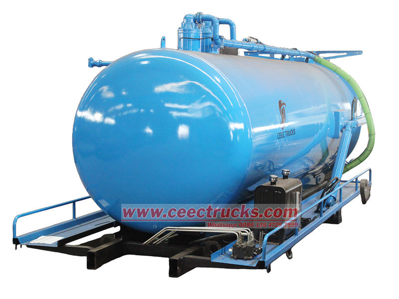 12,000L Truck mounted vacuum tanker unit (also called 12 cbm vacuum suction pump truck upper body, 12,000 liters vacuum tanker truck superstructure, septic tank pump truck upper body kit, vacuum suction truck upper body, 12cbm vacuum sewage suction truck kit) mounted on a vehicle chassis, it absorbs and collects liquids such as sewage, sludge, septic tank sediment, crude oil, and small solid debris, such as small stones. It can be widely used in cleaning sewers, septic tanks, and ditches, playing a vital role in municipal sanitation and environmental governance.
