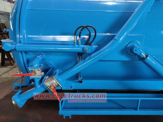 ♦When the tank is full, the operator switches a valve to positive pressure, allowing the waste to be discharged under pressure. Equipped with a hydraulic lift system, the tank can be tilted for gravity unloading.
