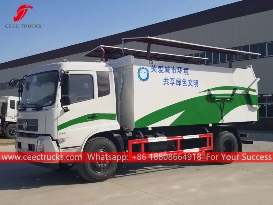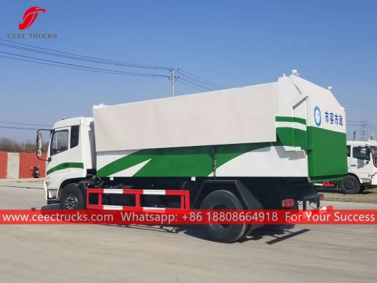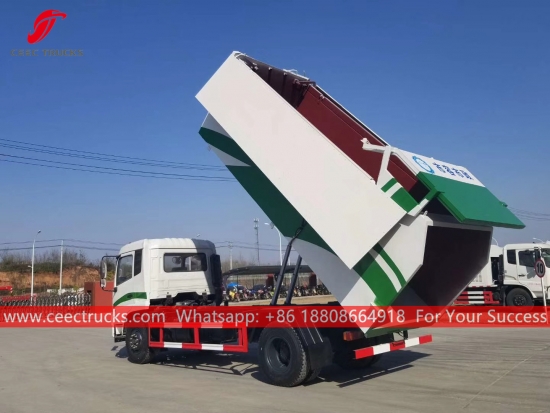 Garbage dumper truck Dongfeng (also called Garbage collector, refuse collector, rubbish truck, garbage collection truck, mobile refuse truck, waste truck, bin wagon, dust cart, bin lorry, garbage transport truck) is widely used in sanitation & municipal, industrial enterprises and residential area, and mainly designed to collect and transport municipal solid waste. If you have special demand of garbage truck, please contact with us. We may design and modify it for you. We also can add power steering and A/C for you