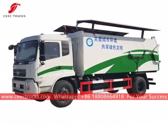 DONGFENG 12cbm garbage dumper, 4x2 chassis, 8-shift manual gearbox, CUMMINS 190HP diesel engine, mainly service for garbage station, Hydraulic rear door and upper cover for easy operation, middle lifting device, All painting and logos depend on requirement.