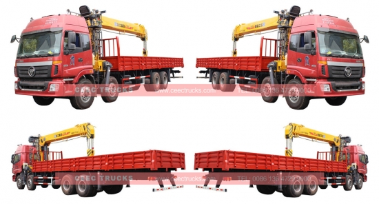 FOTON brand Telescopic 16 Tons boom crane trucks for sale, LHD and RHD model optional, Shanghai diesel engine 280HP, Manual 9-shift gearbox for hot sale. Equipped with 16 Tons telescopic boom crane. Customer required Cargo box model with length can be long as 9000mm, With Remote Control for customer choose