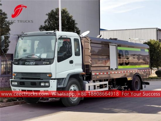 ISUZU Street cleaner truck (also called road sweeping and washing vehicle, hydraulic street cleaning vehicle, vacuum road sweeper truck, ISUZU truck mounted street sweeping system) is designed for daily sweeping in community, city, highway, construction site, overhead roads, bridges, squares, airports as well as docks with asphalt concrete and cement concrete road surface.