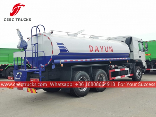 DAYUN 18,000L water tanker truck, DAYUN 6x4 right hand drive chassis, 8-shift manual gearbox, WEICHAI 270HP diesel engine, famous brand water pump, with front, middle and rear spraying nozzle optional. All painting and logos depend on requirement.