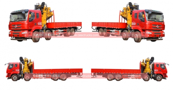 Dongfeng 12 wheelers 25 T knuckle crane trucks, CUMMINS diesel engine 260HP, EURO 3/4 emission optional, Manual 9-shift gearbox as standard, with Left hand drive and Right hand drive model for optional. With Remote Control for customer choose