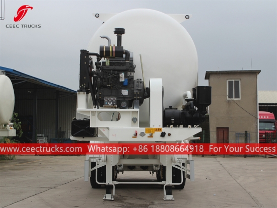 Philippine 32cbm 3-axle bulk powder tanker semitrailer, equipped with superpower auxiliary engine, 3 BPW brand axle, standard JOST landing legs, carbon steel material tanker body with compartment on request, bulk powder delivery system, All painting and logos depend on requirement.