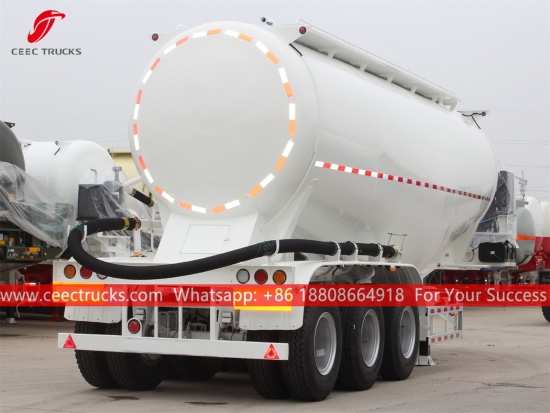 Bulk Powder Tank trailer (also called bulk cement trailer, dry bulk powder semitrailer, dry bulk tank semi-trailer, dry bulk trailer, dry bulk tank trailer, pneumatic bulk tank semitrailer, pneumatic dry bulk tanker etc.) is used to transport dry cement, fly ash, lime powder, mineral powder which the powder diameter is less than 0.1 mm.
