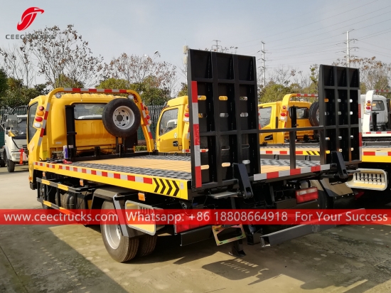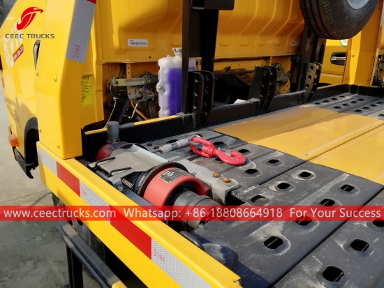 CEEC TRUCKS produced excavator carrier trucks are easy to load machinery, there is a hydraulic ladder at rear of the platform. When loading machinery on, turnover the ladder to ground to build a slope between platform and ground. When finished loading, the ladder should be fold up and fastened by manual.