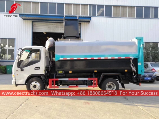 JAC Food garbage truck (also called JAC kitchen waste vehicle, Food waste compactor truck JAC, Food rubbish truck JAC, 5CBM kitchen waste collection truck, garbage collection truck for food waste, New kitchen waste disposal truck JAC) is used to collect, transport and discharge liquid such as dirty water,
