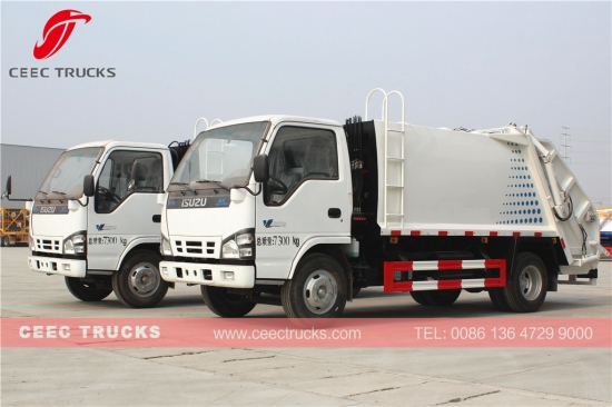 Garbage compactor vehicle 5cbm Isuzu (also called Hydraulic pressing garbage truck, rear loader garbage truck, compactor garbage truck, back loading garbage compression truck, waste collection vehicle) is designed for daily rubbish transport in such living areas as all kinds of cities, large station, port and wharf, airpot, and densely-populated areas like industrial and mineral enterprises and military units.