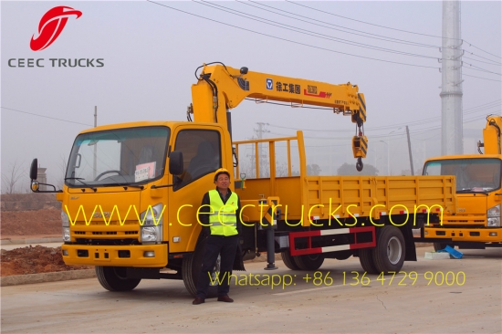 (ISUZU boom crane cargo truck with XCMG 6.3 T telescopic crane lifting on bulk ship and deliver to Sudan)