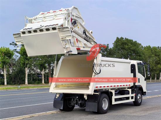 Howo rear loader (also called Howo rear loader garbage truck, Howo waste compaction truck, Howo back loader garbage truck, Howo 4x2 garbage compactor truck, Howo trash compactor truck, Howo rear loader compactor truck) is a new type of sanitation vehicle specially used for collecting, transferring and removing garbage.