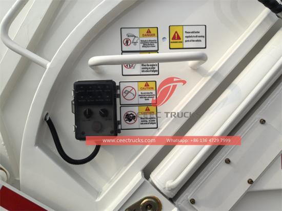 The garbage truck adopts electro-hydraulic control valve and PLC programmable control system, which comprehensively utilizes the advantages of electric control and hydraulic control. Through electric-hydraulic combined control, it effectively solves the interface problem between the hydraulic system and the electrical system and improves the reliability of use.