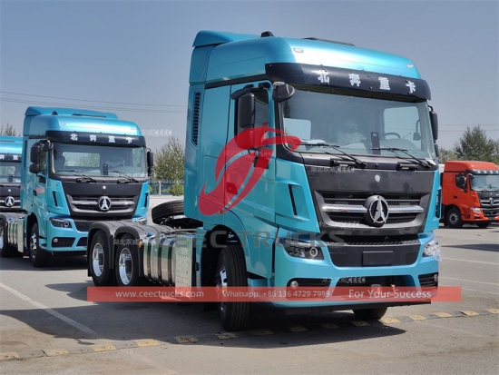 Beiben V3 tractor truck (also called Tractor head, Semi trailer tractor, Beiben 560HP trailer head, towing head, Beiben heavy duty prime mover) is a special engine that provides motive power for hauling a towed or trailered load.