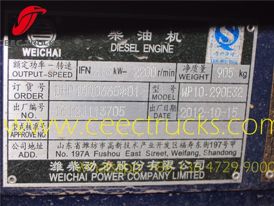 ★ WEICHAI engine WP10.290E32, Euro 3 emission, strongly 290ps, and FAST 9shift manual mechinical gearbox