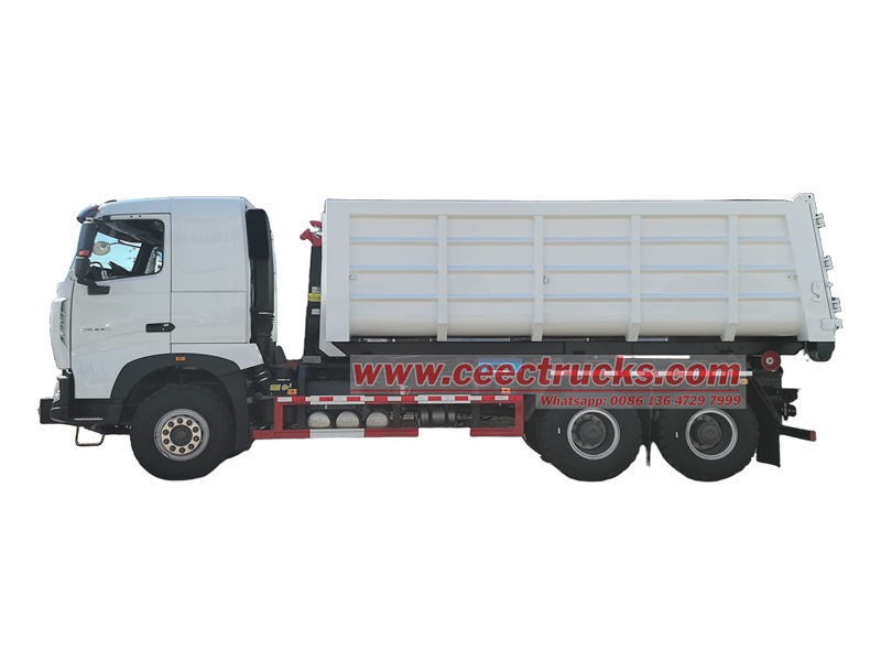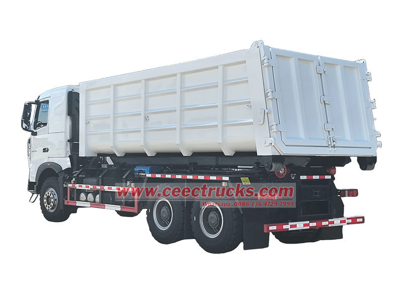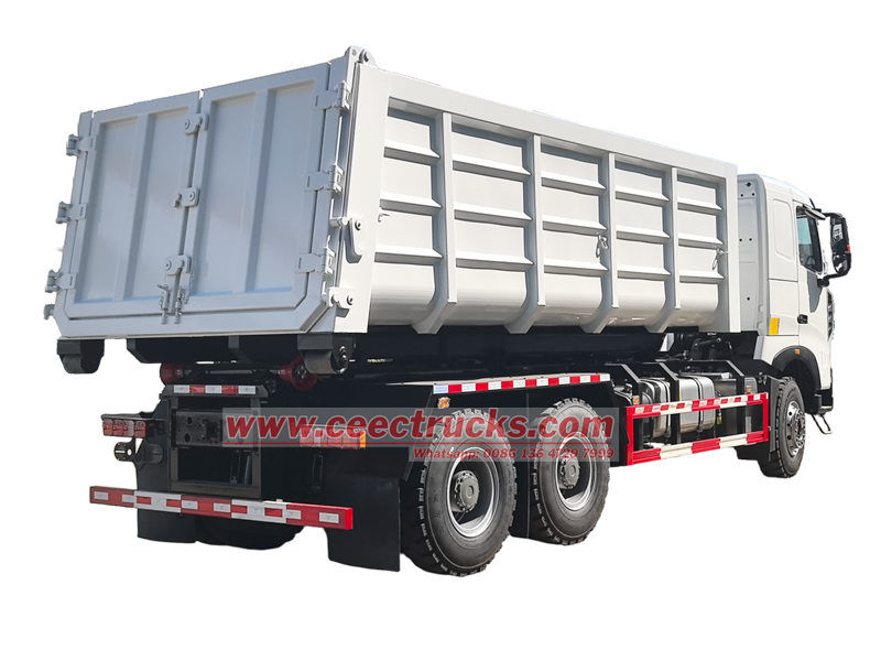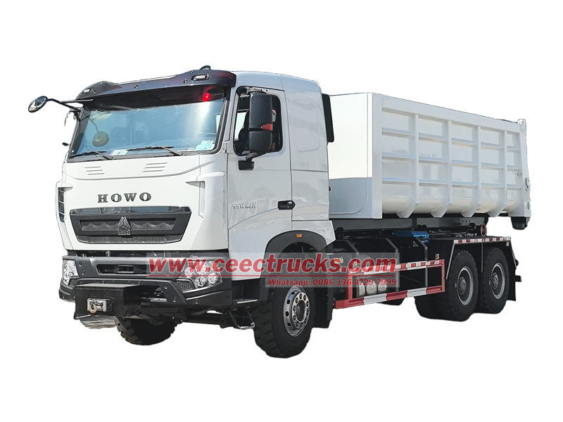 The operating steps of Howo 20tons hook loader truck are relatively clear, mainly including four links: preparation, loading, transportation and unloading. Each link relies on the coordinated action of the hydraulic system and the hook arm device to ensure the efficiency and safety of garbage collection and transportation.