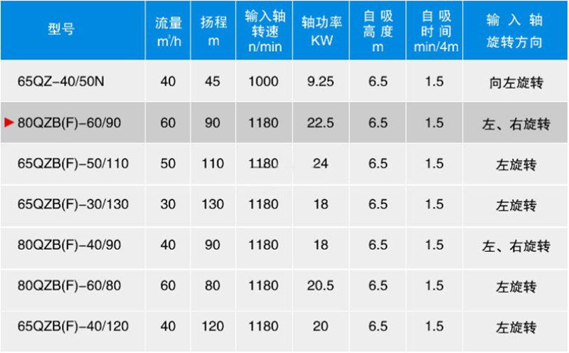 The 80QZF-6090S water pump is a self-priming centrifugal pump specifically designed for use in water trucks and other specialized vehicles. Its core parameters include: flow rate 60 m³/h, head 90 m, self-priming height 6.5 m, and self-priming time 1.5 min. It is made of cast iron and features an external mixing self-priming structure. Driven by the vehicle's power take-off, it is suitable for conveying clean water media.
