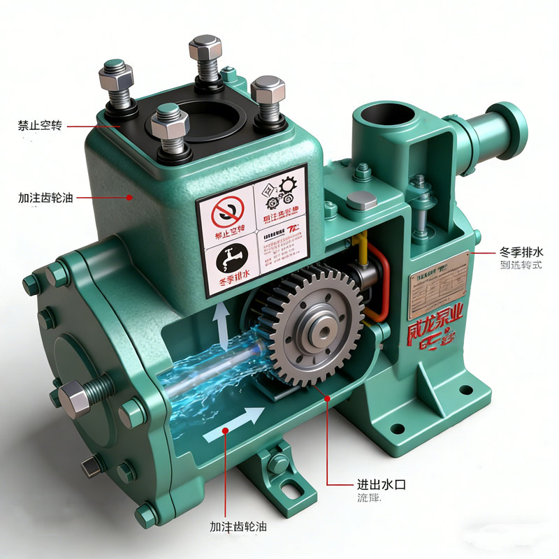 The water pump features a speed-increasing gearbox design, consisting of a pump body, impeller, mechanical seal, and other components. It eliminates the need for a foot valve in the suction line, resulting in a compact structure and convenient operation and maintenance.