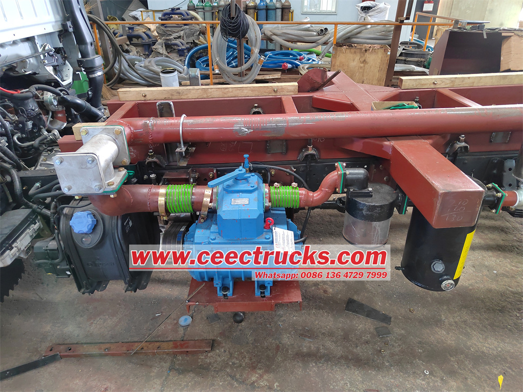 The Isuzu NQR cesspit emptier truck mounted with MORO PM70A, The AIR Series vacuum pumps are crafted with a cast iron body to guarantee maximum reliability. Cast Iron is the most efficient material for releasing heat from the pump. The air intake and discharge are designed to reduce noise and heat production. This series is equipped with a special inspection port in the pump body allowing the operator to visually check the pump’s operation. The non-return and the four-way valves are integrated into the pump. The hose connection elbows consist of flange couplings and can be moved in a desired direction in accordance with the requirements of the vacuum pump usage.