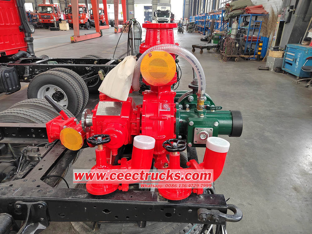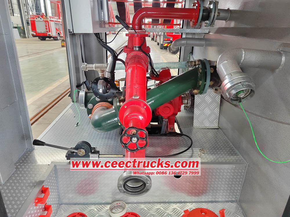 Water pump operation panel in English, fender should be black, with alarm light, detachable ladder, body rear equipment box under the direction of the upward tilt of about 45 degrees, all interfaces of the vehicle and accessories are British, with a 30m roll of black high-pressure hose |