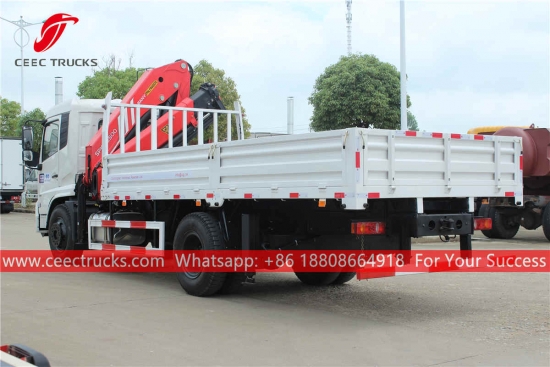 10tons Boom crane cargo truck, Dongfeng 4×2 chassis, FAST 8-shift manual gearbox, CUMMINS 190HP diesel engine, cargo body dimension as optional, painting and logos depend on requirement.