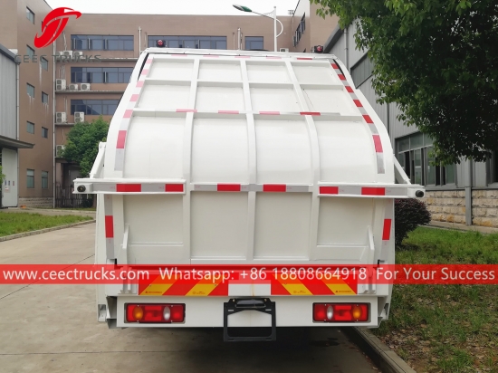 Dongfeng 12CBM hydraulic Waste Compactor (also called Dongfeng Compressing garbage truck, rear loader garbage compactor, hydraulic garbage compressing truck Dongfeng, good quality back loading garbage collection truck, Dongfeng trash compactor vehicle, 6-wheeler rubbish collection truck, waste compressed truck for sale) is designed for daily rubbish transport in such living areas as all kinds of cities, large station, port and wharf, airport, and densely-populated areas like industrial and mineral enterprises and military units.
