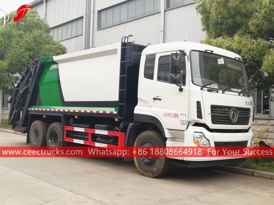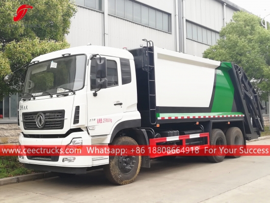 Dongfeng 18CBM Waste Compactor (also called Dongfeng Compression garbage truck, rear loading refuse compactor, garbage compressed truck Dongfeng, good quality back loading garbage truck, Dongfeng waste compactor truck, 10-wheeler refuse collection truck, hot sale rubbish compressed truck) is designed for daily rubbish transport in such living areas as all kinds of cities, large station, port and wharf, airport, and densely-populated areas like industrial and mineral enterprises and military units.