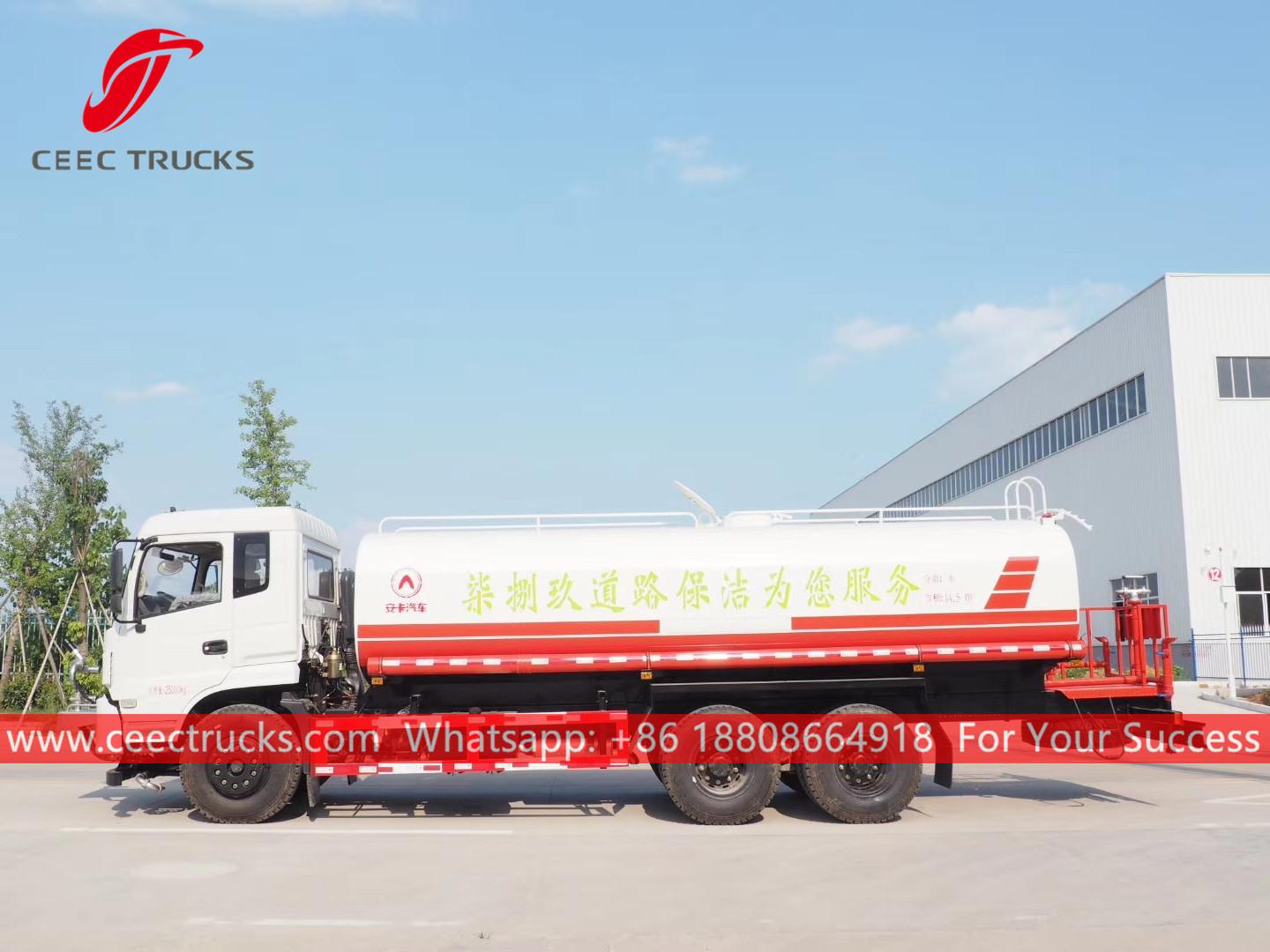 DONGFENG 15,000L water truck, DONGFENG 6x4 left hand drive chassis, 8-shift manual gearbox, CUMMINS 210HP diesel engine, famous brand water pump, with front, middle and rear spraying nozzle optional. All painting and logos depend on requirement.