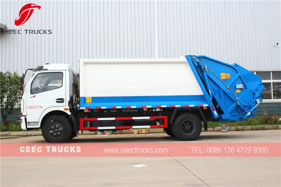 Garbage compactor Dongfeng (also called Garbage compressed truck, hydraulic pressing garbage truck, rear loader garbage truck, compactor garbage truck, trash compressor truck, back loading garbage compression truck, waste collection vehicle) is designed for daily rubbish transport in such living areas as all kinds of cities, large station, port and wharf, airpot, and densely-populated areas like industrial and mineral enterprises and military units.