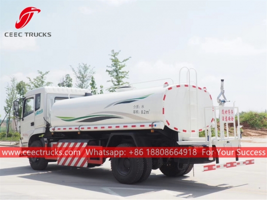 8CBM Water tanker lorry DONGFENG (also called Water sprayer truck for sale, Water delivery truck, Water bowser truck manufacturer, Water tanker vehicles, new Water transportation truck) is used for the road flushing, tree and lawn greening, high building cleaning, construction of road and factories. It has the functions of flushing, watering, transporting water and fire fighting.