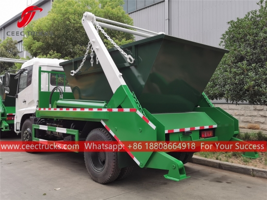 Dongfeng 8cbm skip loader garbage collection truck, 4x2 RHD chassis, manual 6-shift manual gearbox, CUMMINS 180HP diesel engine, high strength steel swing arm system, Hydraulic control device and Electric control box optional. All painting and logos depend on requirement.