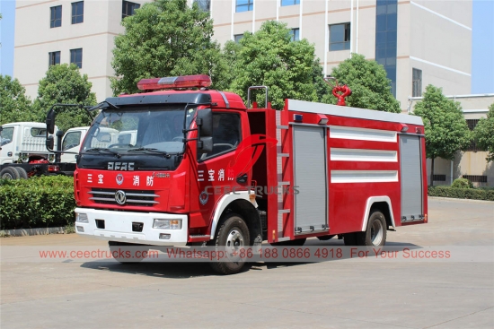 Dongfeng water foam fire truck, 4,000 liters water tank and 1,000 liters foam tank, Dongfeng 4x2 LHD/RHD chassis, 5-speed manual gearbox, Chaochai 160HP diesel engine, painting and logos depend on requirement.