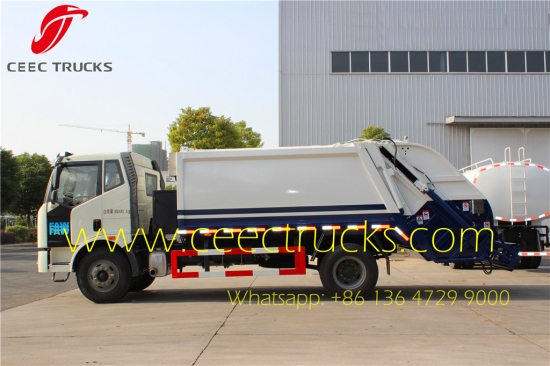FAW Garbage Compactor Truck also can be called FAW Trash Compressor Truck, FAW 10 CBM Refuse Compression Truck, FAW RHD Refuse Collection Truck, FAW 10000 liters Rubbish Compactor Truck, etc. Authorized best FAW LHD and RHD refuse compressor trucks are mainly designed and produced to collect, compress and transport municiple solid waste.
