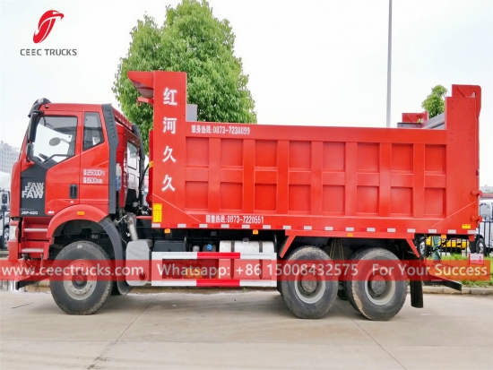 Tipper truck FAW (also called heavy duty dump truck, FAW tipper truck, 50tons tipper trucks, Hyva front lifting dump truck, dump truck, construction sand rock dump truck, tipper lorry, tip truck, dump truck tipping, tipper and lorry, tipper lorry) is designed for both overseas and domestic high end heavy truck markets. In order to prevail over its rivals in the global competition, key components of the tipper truck are designed in close collaboration with top suppliers in the world.