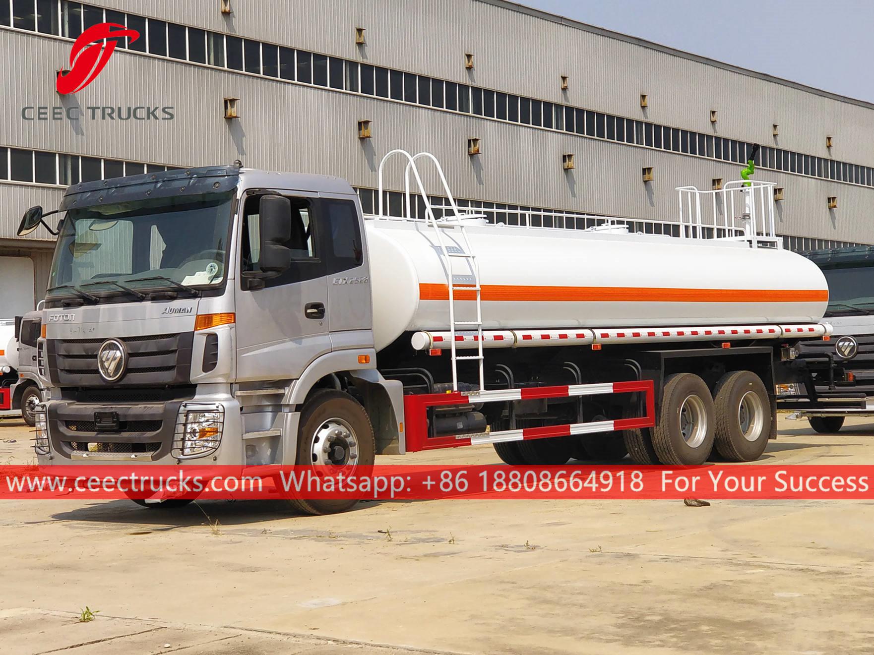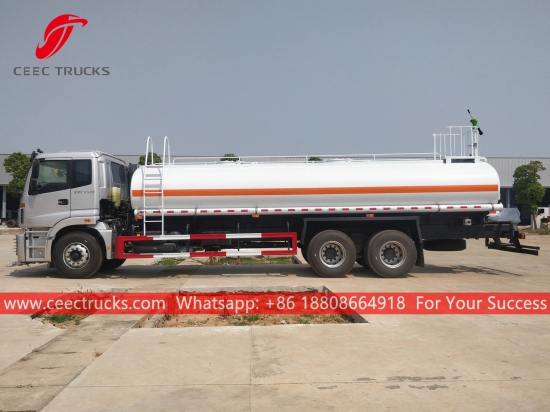 FOTON 15,000L water bowser truck, FOTON 6x4 left hand drive chassis, 8-shift manual gearbox, CUMMINS 270HP diesel engine, famous brand water pump, with front, middle and rear spraying nozzle optional. All painting and logos depend on requirement.