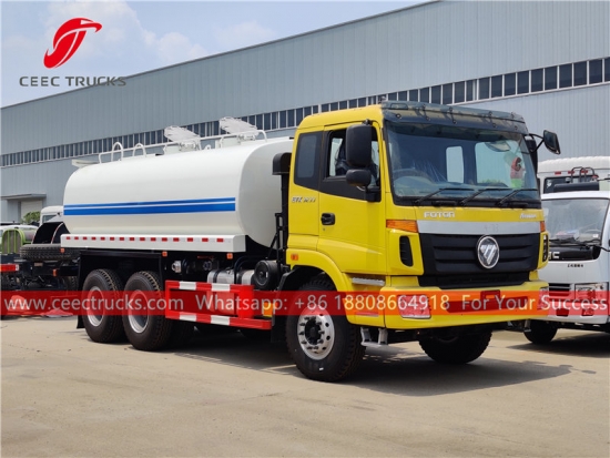 FOTON 20,000L water tanker truck, FOTON 6x4 chassis, FAST 9-shift manual gearbox, WEICHAI 270HP diesel engine, famous brand water pump, with front, middle and rear spraying nozzle optional, All painting and logos depend on requirement.