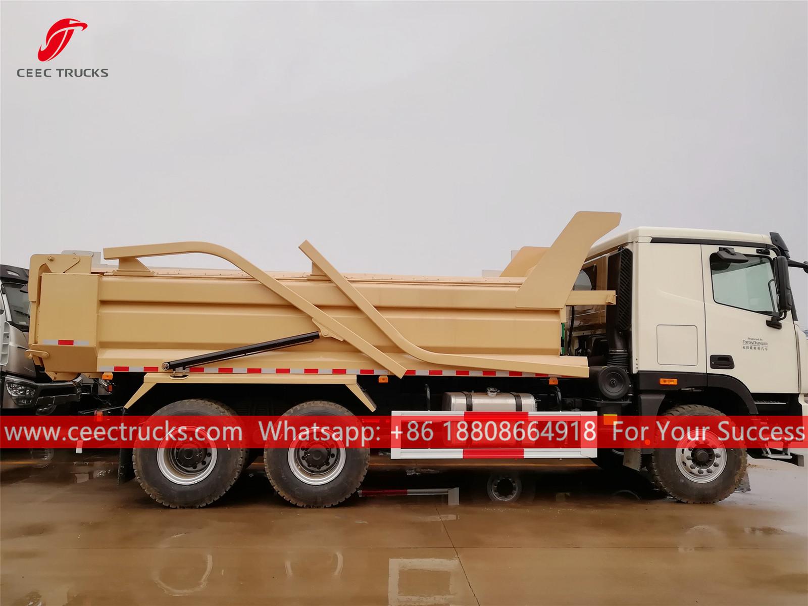 FOTON 6x4 Dumper truck (also called heavy duty dump truck, tipper truck, 40tons tipper trucks, Hyva front lifting dump truck, dump truck, construction sand rock dump truck, tipper lorry, tip truck, dump truck tipping, tipper and lorry, tipper lorry) is a truck used for transporting oose material, such as sand, gravel, coal, dirt, etc.