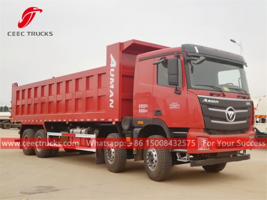 FOTON 8x4 dump tipper truck, FOTON 8x4 LHD chassis, FAST 12-shift manual gearbox, famous Chinese brand WEICHAI 430HP diesel engine, high strength steel tipper body, with HYVA or domestic hydraulic lifter optional. All painting and logos depend on requirement.