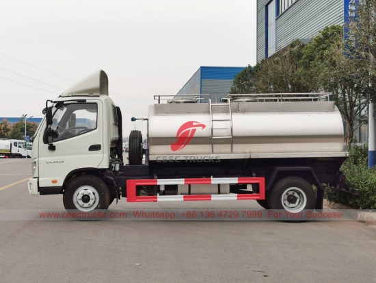4000L Milk Tanker Truck FOTON (also called FOTON stainless steel water tanker truck, FOTON 4×2 potable milk tank, FOTON stainless steel milk tanker manufacturer, customized FOTON potable water truck, FOTON SS 304 milk tanker truck) is used for the road flushing, tree and lawn greening, high building cleaning, construction of road and factories. It has the functions of flushing, watering, transporting water and fire fighting.