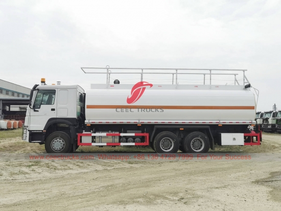 HOWO 20,000 liters fuel transportation truck for sale, HOWO 6×4 LHD chassis, 10-shift manual gearbox, WEICHAI 371HP diesel engine, standard fuel tanker, famous brand fuel pump as standard. All painting and logos depend on requirement.