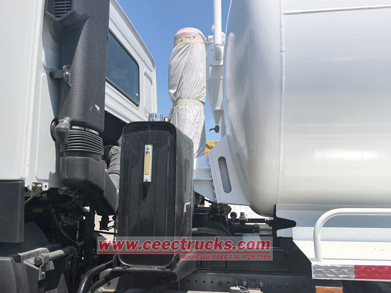 The Howo 20,000 liters vacuum tanker truck are based on the HOWO 6x4 chassis, with a wheelbase of 4325+1350mm,12.00R20 tires with totally 11 pcs, equipped with a 400hp WP12.400E32 diesel engine and an HW19710 gearbox,10-forward gear, 2-reverse gear, ZF8198 steering gear, which is powerful and easy to operate. It has the functions of self-priming, self-draining and self-unloading. It has strong suction and high efficiency, the tank body can be quickly filled and efficiently drained in a single operation.