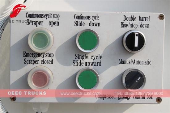 ** Back alarm and Camera can be equipped. ** Italy mulit-valve can be choose. ** 240L (single bin or double bin) or standard 660 L, 1100 L bins with bin lifter can be choose. |
