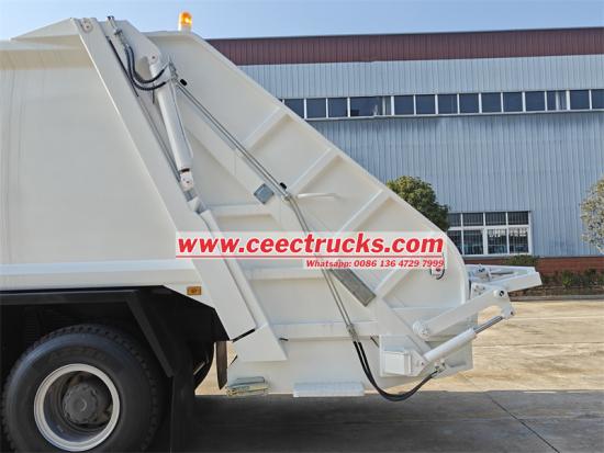 Fully sealed loading hooperHOWO Rear Load Garbage Truck (also called HOWO garbage compression truck, HOWO rear loader, HOWO waste compactor truck, back load garbage truck, HOWO trash compactor truck, garbage compactor manufacturer) is designed for daily rubbish transport in such living areas as all kinds of cities, large station, port and wharf, airport, and densely-populated areas like industrial and mineral enterprises and military units.