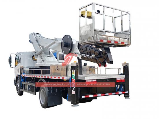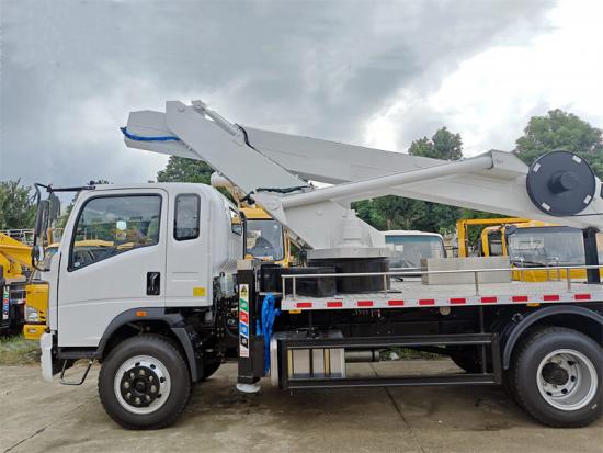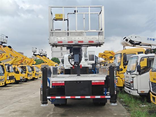 Insulation bucket can be achievedThe HOWO 22m aerial platform truck is a specialized engineering truck that integrates superior technical performance and safety design. Built on the Howo all-drive chassis, the truck is equipped with an ISF3.8S3154 engine with a maximum output of 154 horsepower and a gross vehicle mass of 10,000 kg, providing flexible and powerful handling.The Howo light duty aerial platform truck has a maximum working height of 22 meters and a maximum operating radius of 12 meters.