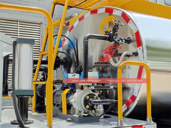 Double-layer insulation tank technology: The 3000L asphalt tank adopts 80mm thick asbestos insulation layer + stainless steel frosted outer plate, and the temperature drop within 8 hours is ≤12℃, which greatly reduces the number of repeated heating of asphalt and reduces fuel consumption. The built-in wave-breaking plate design prevents asphalt from shaking and splashing during transportation, improving safety.