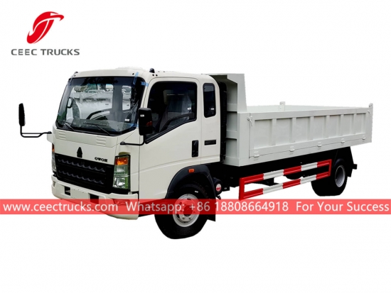 HOWO light tipper truck, HOWO 4x2 RHD chassis, 6-shift manual gearbox, famous Chinese brand YUNNEI 120HP diesel engine, high strength steel tipper body, with HYVA or domestic hydraulic lifter optional. All painting and logos depend on requirement.