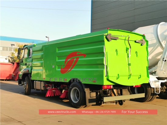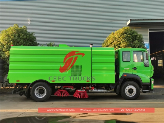 howo 5 cbm road sweeper truck (also called howo 5 cbm road sweeper truck, howo 5 cbm hydraulic road sweeper, HOWO street sweeping truck, street cleaner truck, howo 5 cbm road cleaning vehicle) is designed for daily sweeping in community, city, highway, construction site, overhead roads, bridges, squares, airports as well as docks with asphalt concrete and cement concrete road surface.