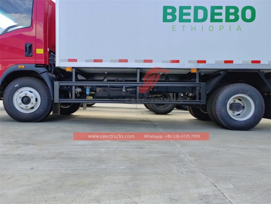 HOWO 5 tons Refrigerator Cargo Van (also called Refrigerated van HOWO, HOWO freezer truck, HOWO reefer truck, HOWO chiller lorry, HOWO cooling van truck) is used for transporting goods that require refrigeration or temperature control, such as food items, pharmaceuticals, or other perishable goods. These vans are specially designed and equipped with insulated walls, a refrigeration unit, and a temperature control system to keep the cargo at the desired temperature during transportation.