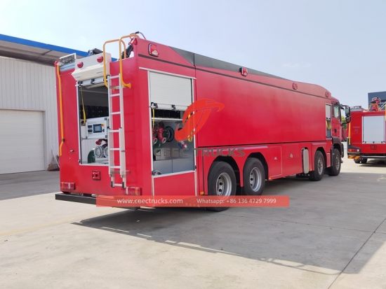HOWO water foam dry powder fire engine, HOWO Left Hand Drive model 8x4 chassis, FAST 12-speed manual gearbox, HOWO 540HP diesel engine, painting and logos depend on requirement.